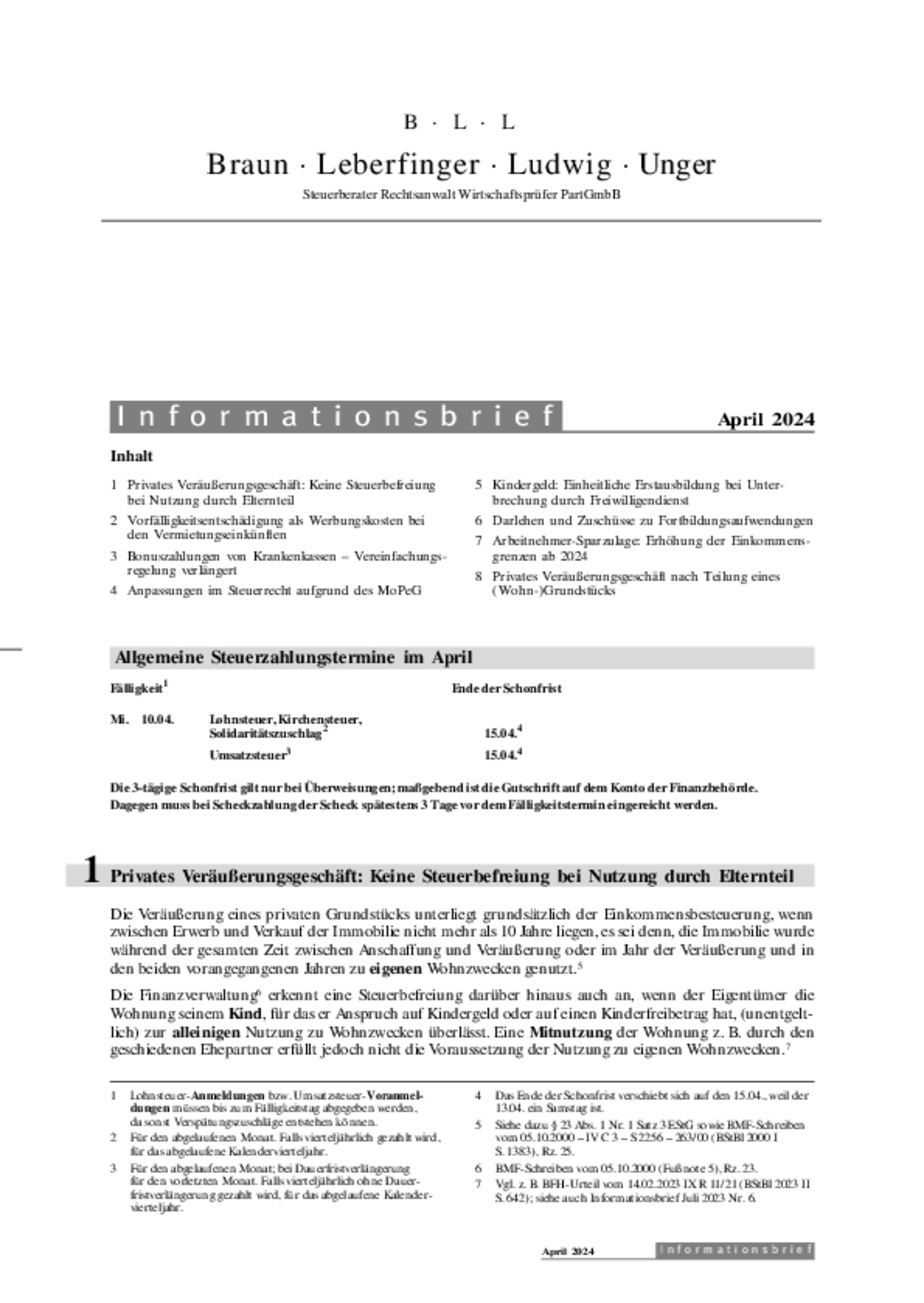 - Privates Veräußerungsgeschäft: Keine Steuerbefreiung bei Nutzung durch Elternteil