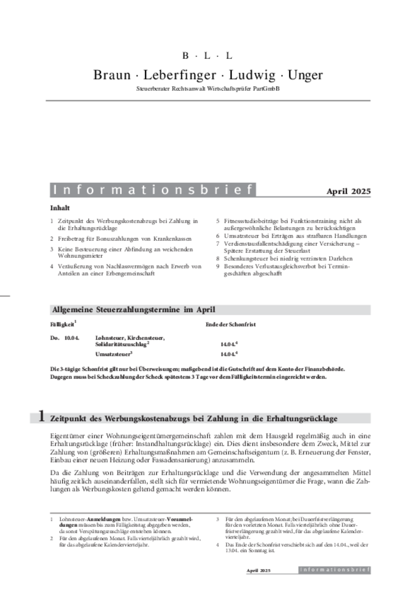 - Zeitpunkt des Werbungskostenabzugs bei Zahlung in die Erhaltungsrücklage