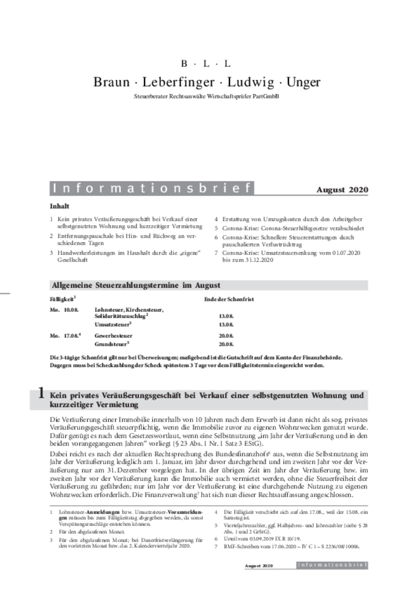 Informationsbrief August 2020