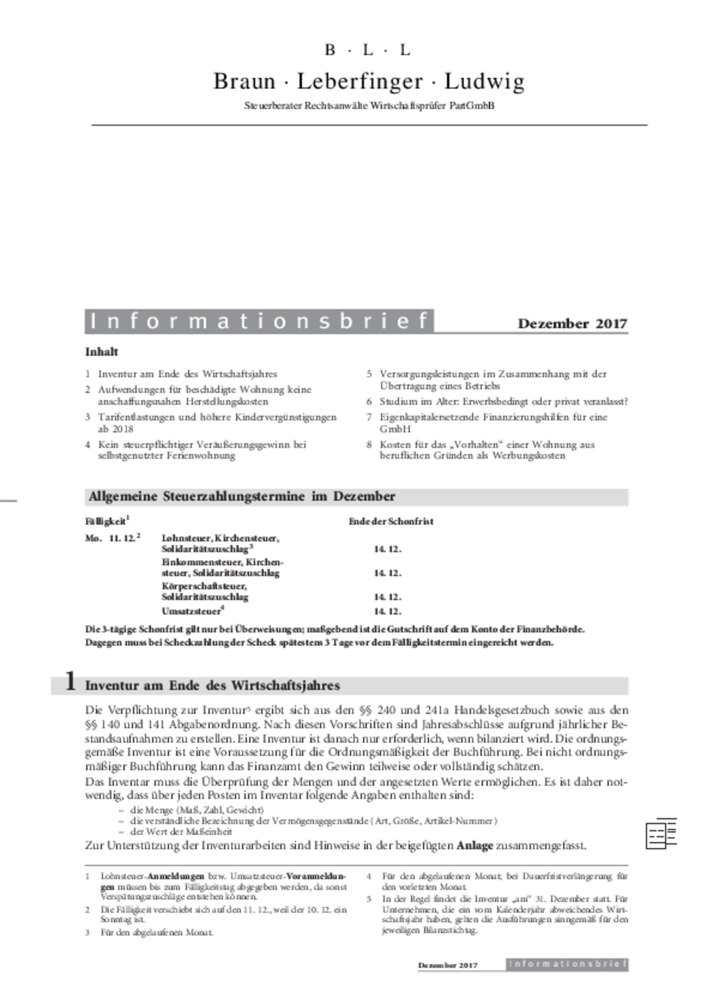 Informationsbrief Dezember 2017