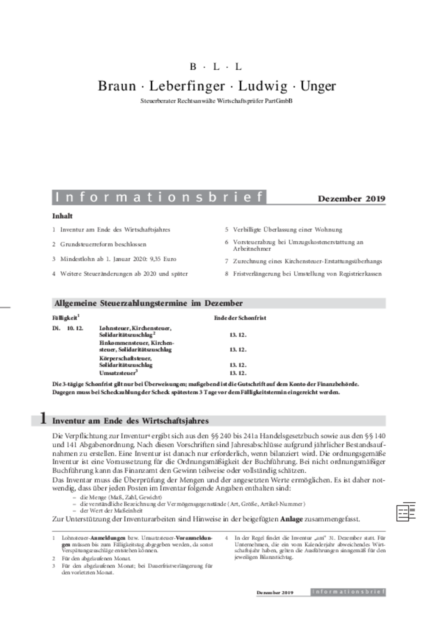 - Inventur am Ende des Wirtschaftsjahres