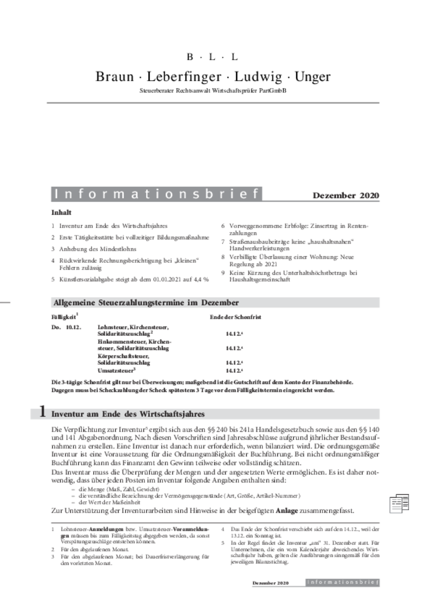 - Künstlersozialabgabe steigt ab dem 01.01.2021 auf 4,4 %