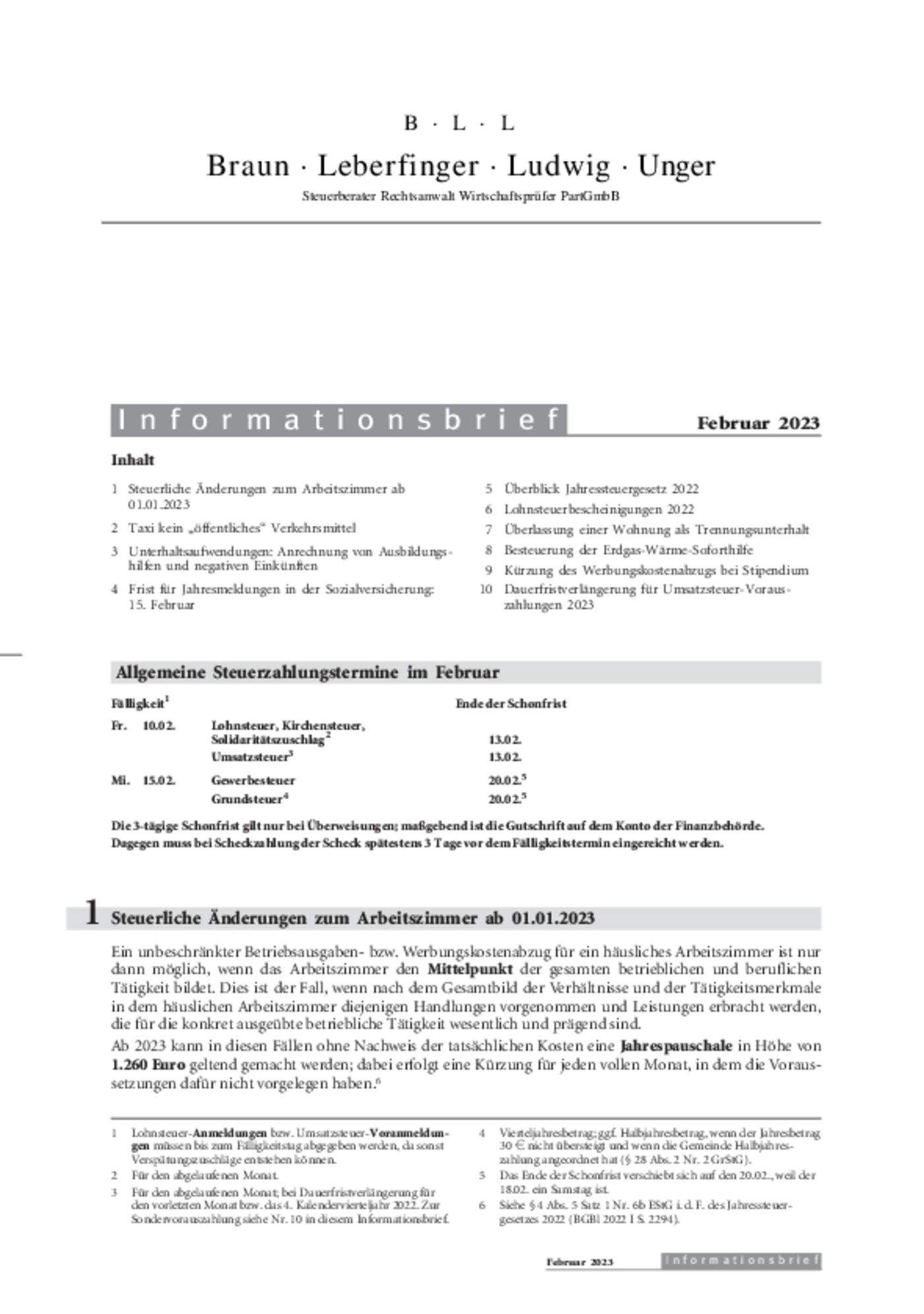 - Steuerliche Änderungen zum Arbeitszimmer ab 01.01.2023