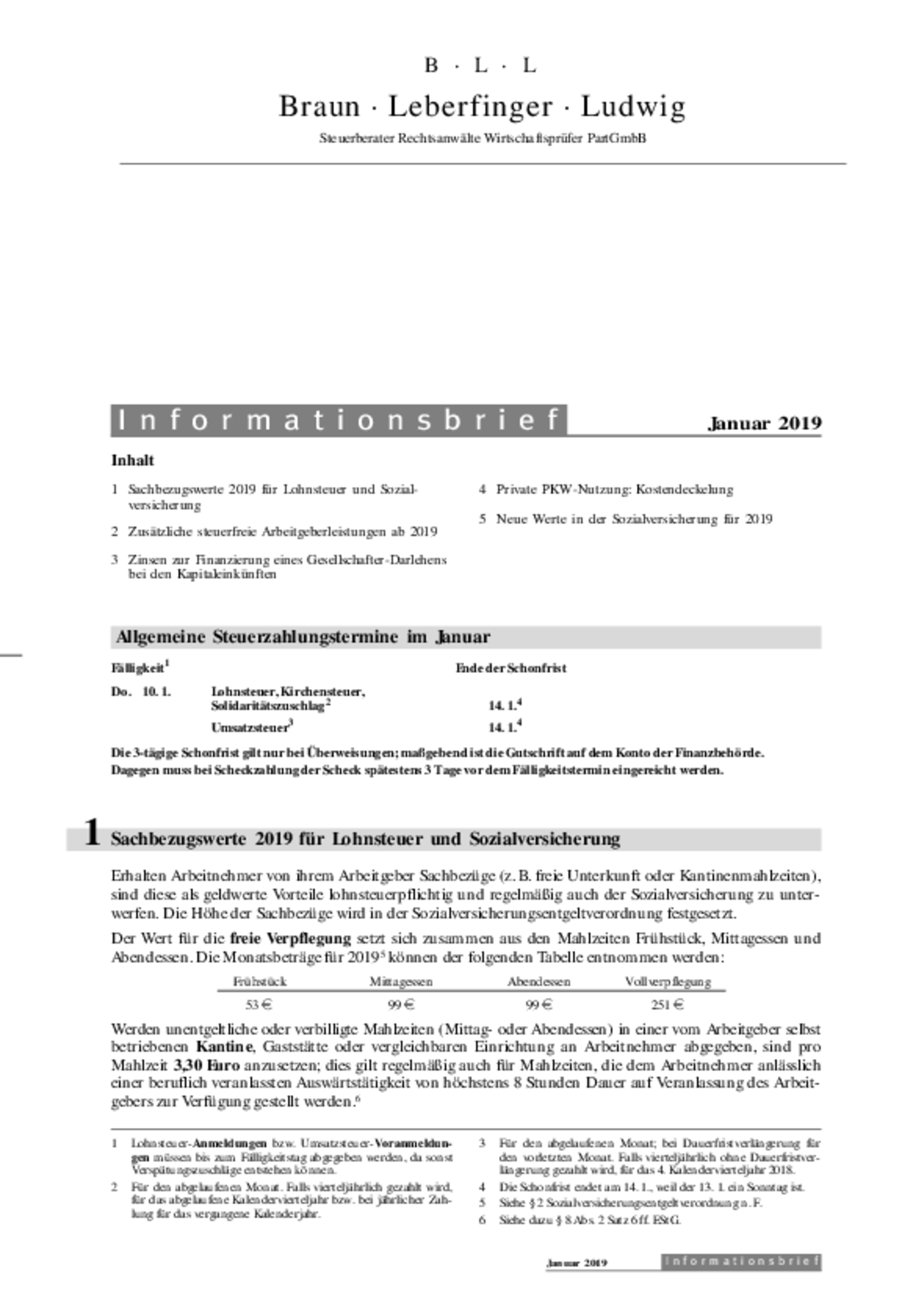 - Sachbezugswerte 2019 für Lohnsteuer und Sozialversicherung