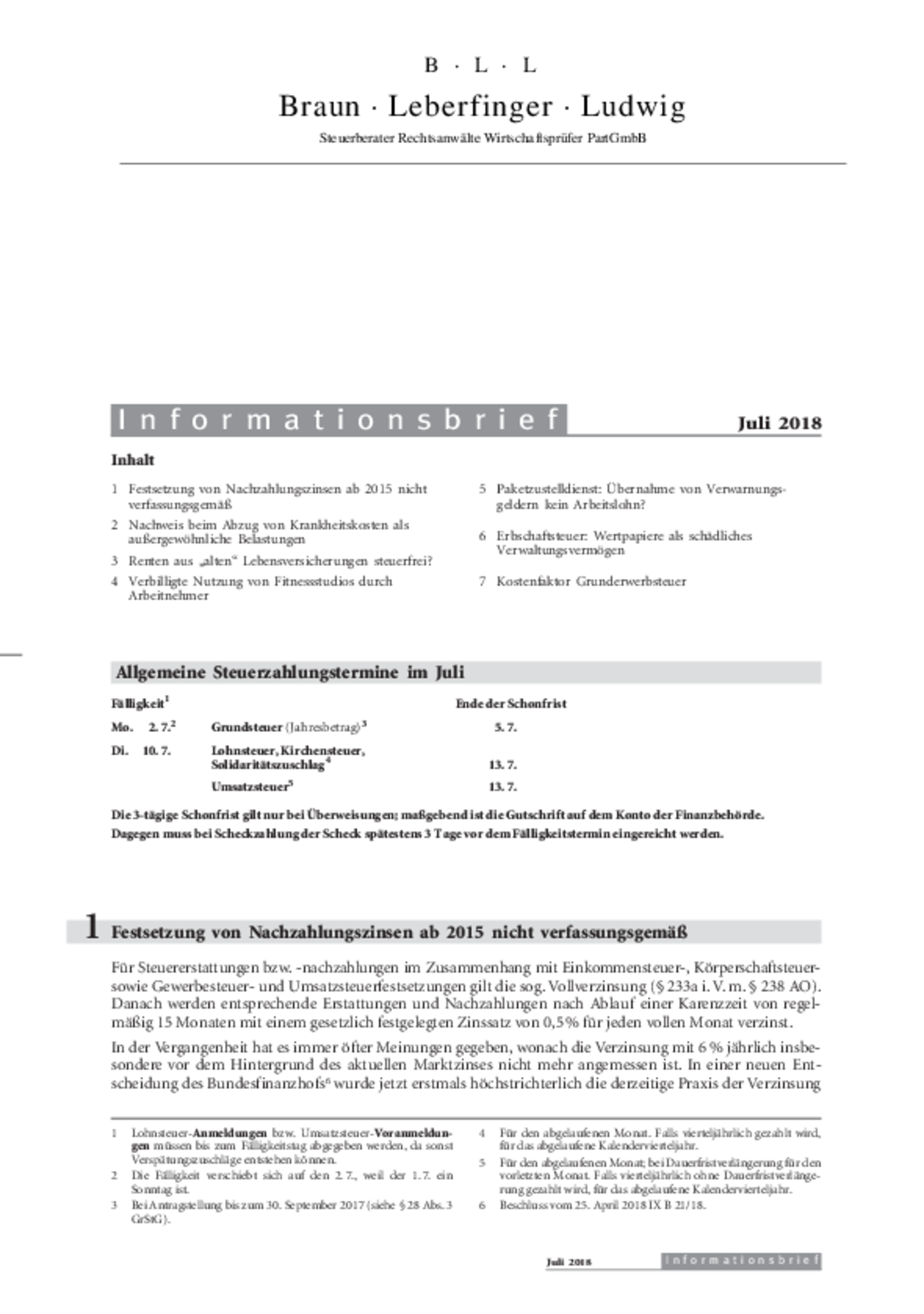 Informationsbrief Juli 2018