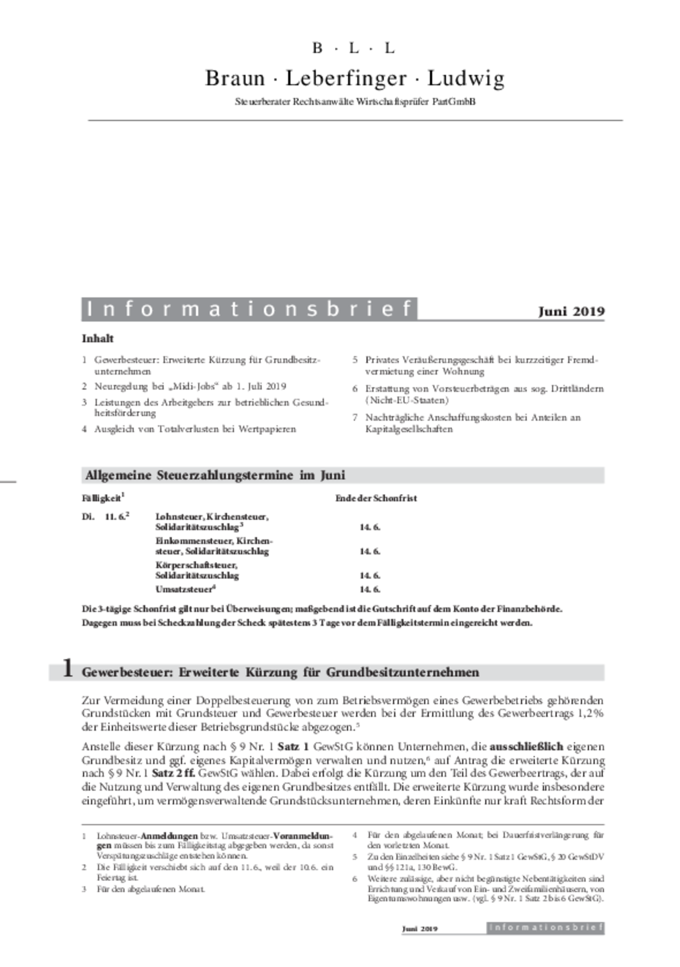 - Gewerbesteuer: Erweiterte Kürzung für Grundbesitzunternehmen
