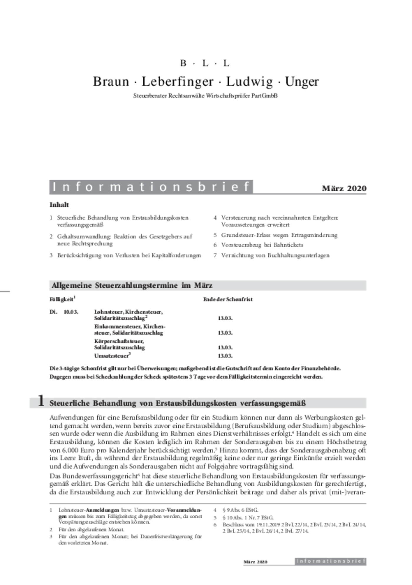 Informationsbrief März 2020