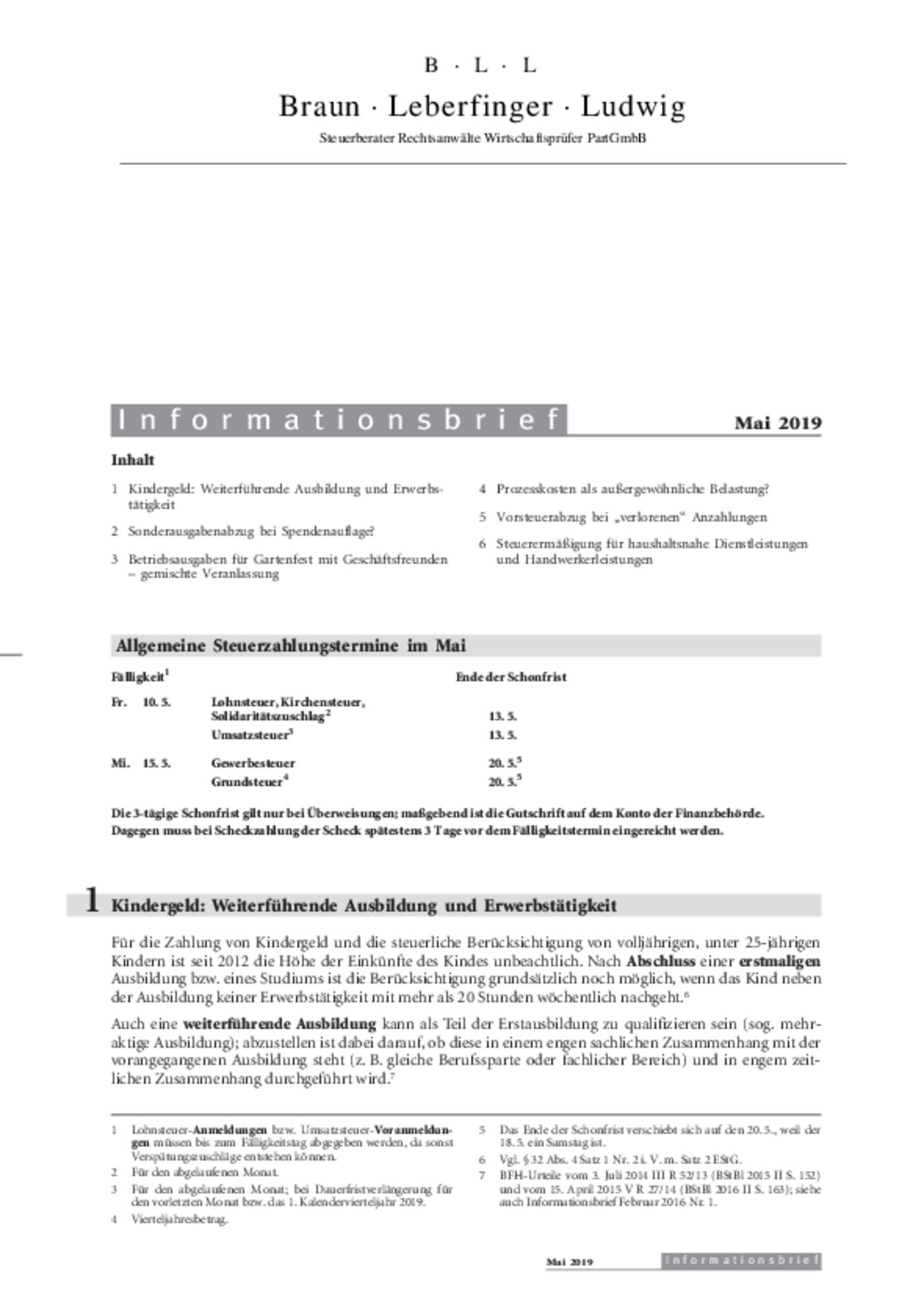 Informationsbrief Mai 2019