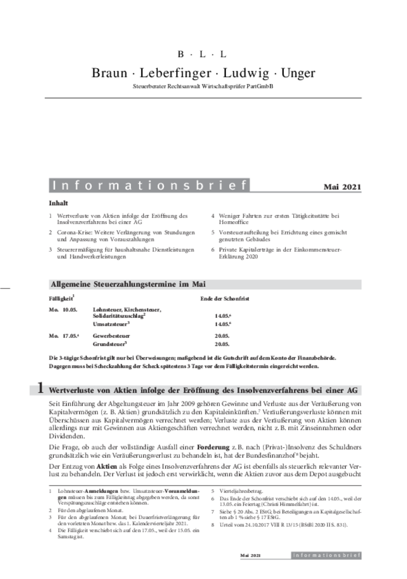 Informationsbrief Mai 2021