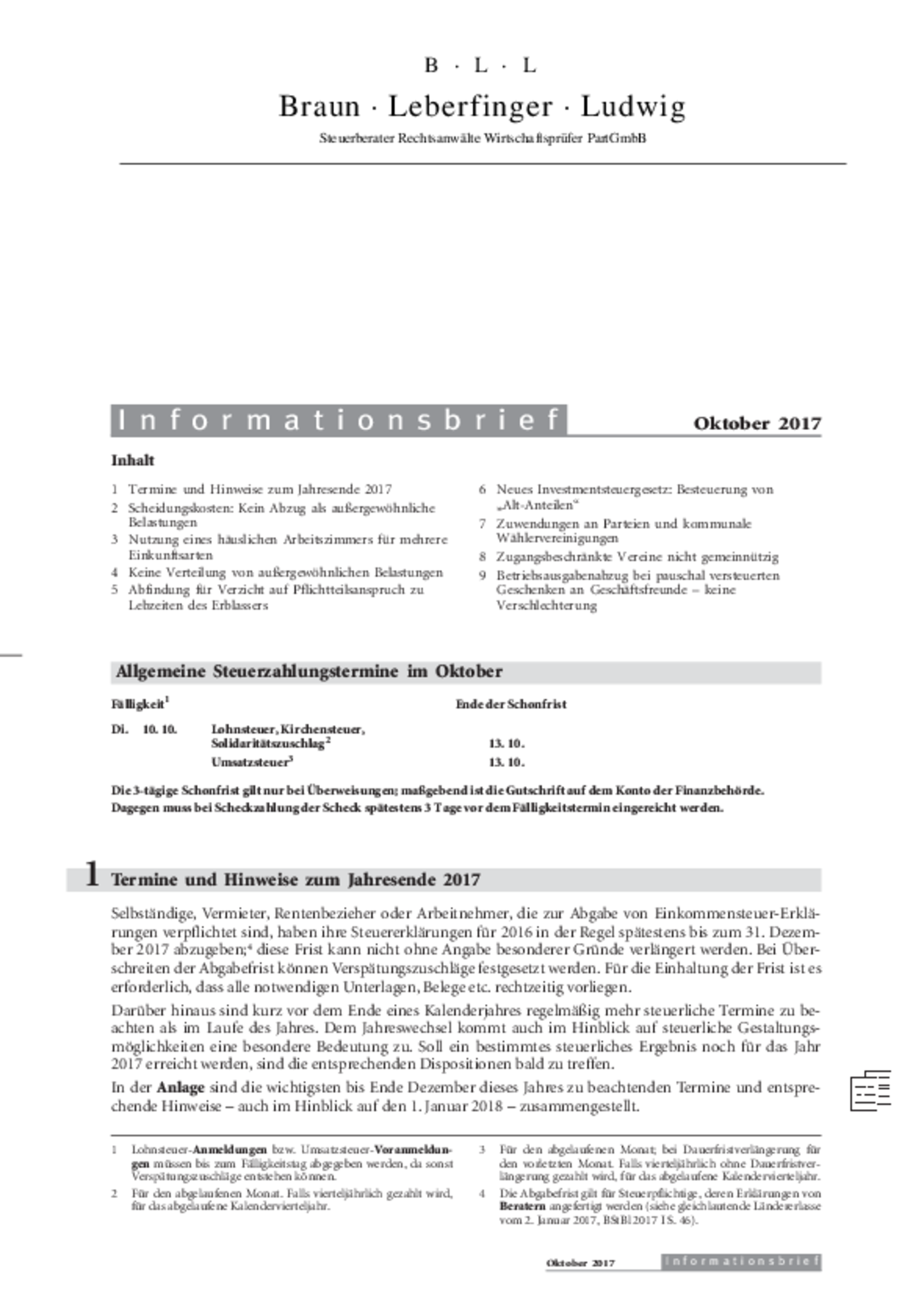 Informationsbrief Oktober 2017