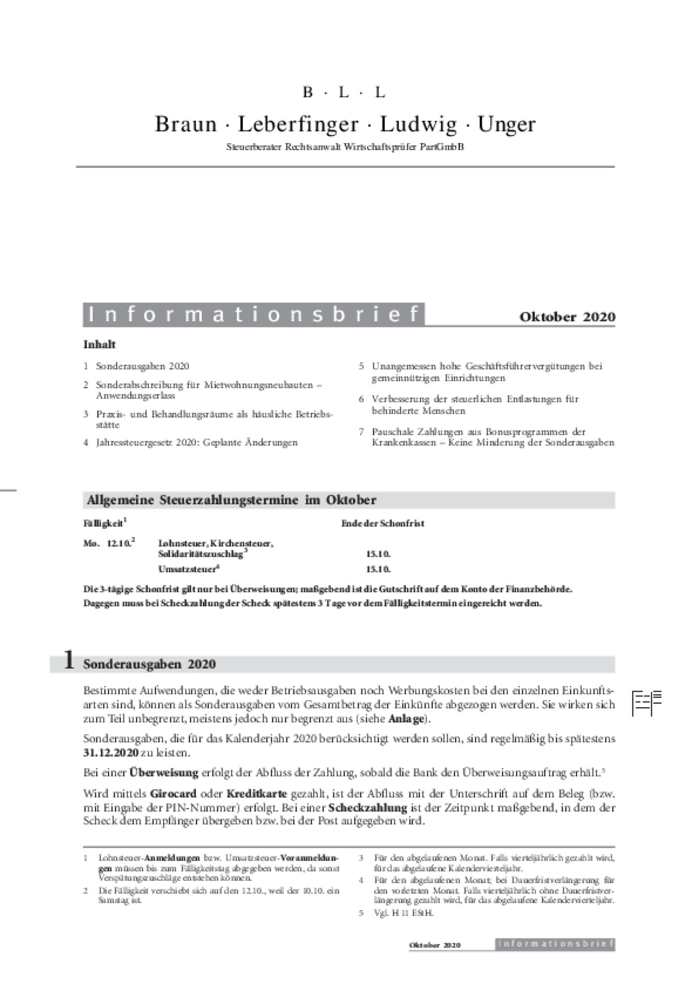 - Sonderausgaben 2020