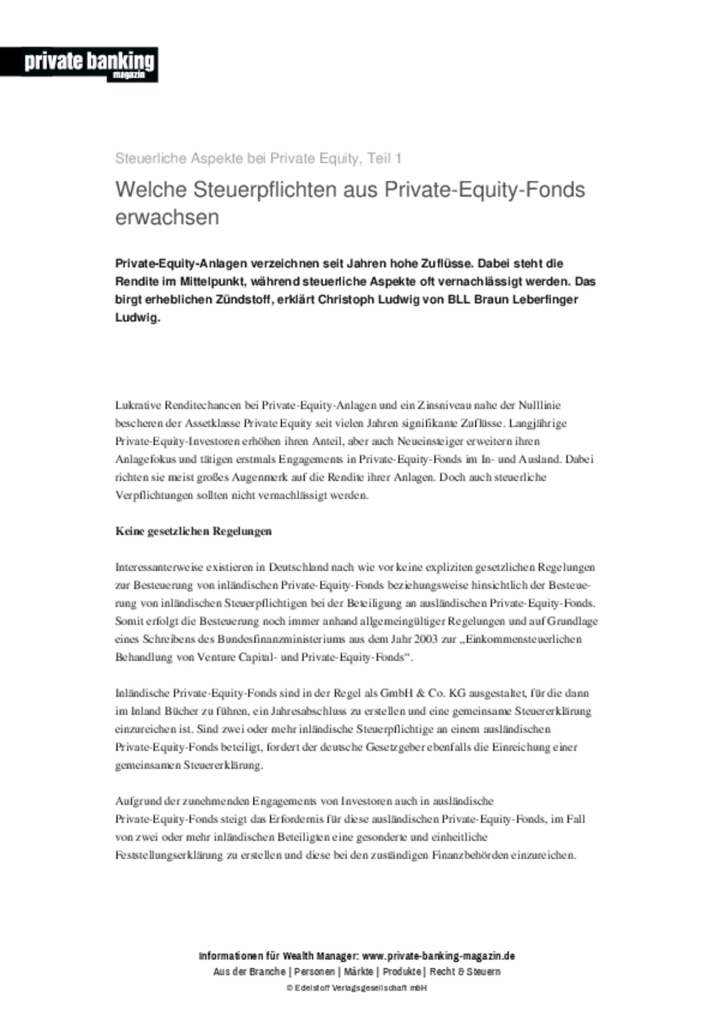 Welche Steuerpflichten aus Private-Equity-Fonds erwachsen